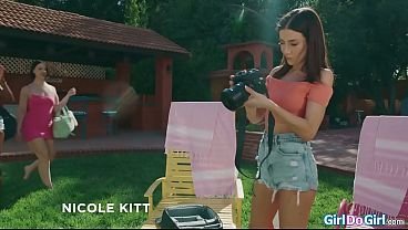 Petite lesbian teen inviting classmates to have threesome